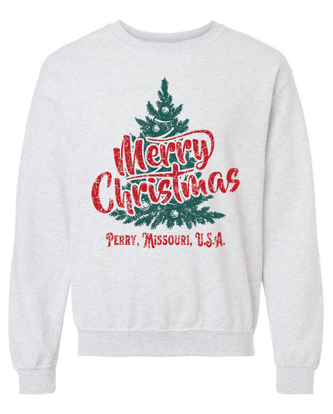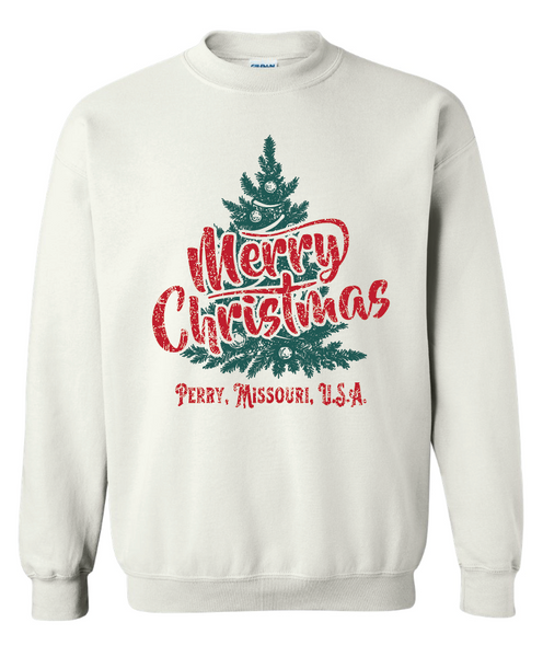 Celebrate this holiday season with your Merry Christmas Perry, Missouri crewneck sweatshirt. Please allow 5 days for production. Item may be shipped or picked up at South Lake Designs in Perry.